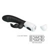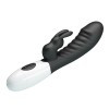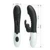 Kiváló minőségű anyagból készített, 30 erőteljes vibrációs funkcióval rendelkező, könnyen kezelhető, nyuszi formájú csiklóizgatóval kiegészített, a g-pont izgatására is használható vibrátor, stimuláló felülettel.