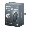 A kiváló minőségű, bőrbarát anyagból készített, két motorral felszerelt Satisfyer Tap & Climax 1 mindent tartalmaz, amit Ön egy izgatótól elvár: elegáns dizájn, kompakt méret és természetesen intenzív rezgések, amelyeket az előlapon található gombokkal könnyedén irányíthat. Válasszon 11 vibrációs program közül a gyengédtől az intenzívig. Ez a Satisfyer eszköz azonban még többet kínál annak érdekében, hogy a csikló stimulációt a következő szintre emelje! A 11 további koppintó programmal a Satisfyer Tap & Climax 1 gyengéden – vagy néha kicsit erőteljesebben – koppint a csiklójára, és teljesen új típusú izgalmakat kínál.
